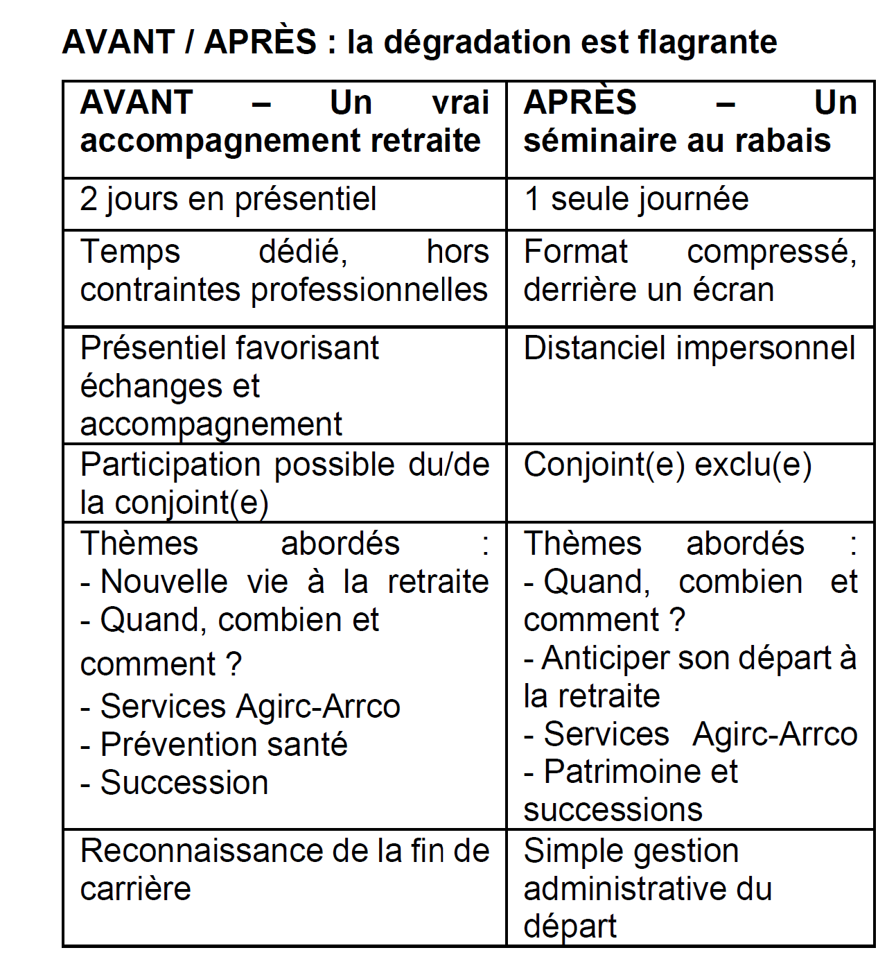 En définitive, ce projet ne répond ni à une logique économique sérieuse, ni à une cohérence sociale ou stratégique mais aura des conséquences RH et humaines désastreuses. Pour la CGT, cette mesure est injustifiée et inacceptable, et doit être abandonnée.