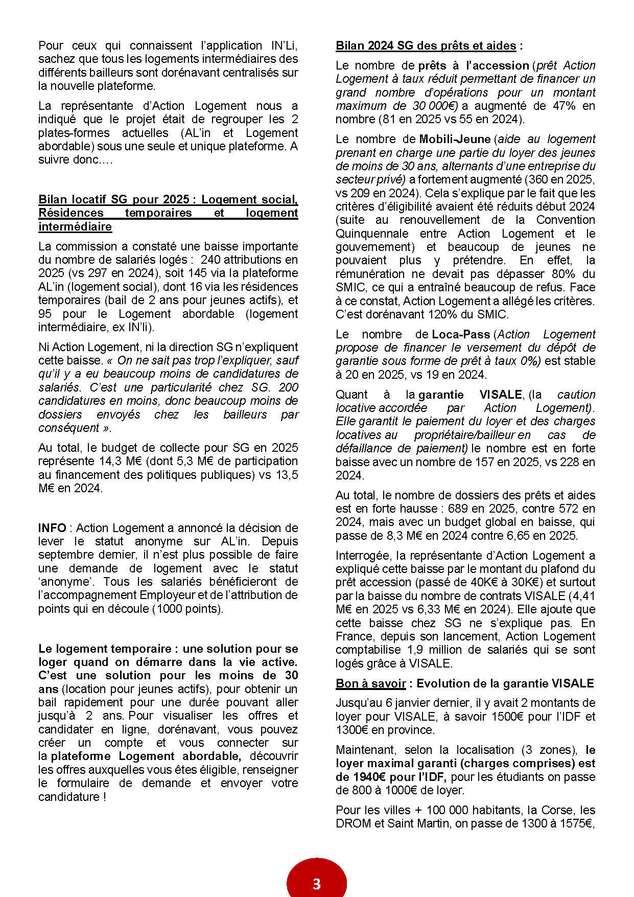Interrogée, la représentante d’Action Logement a expliqué cette baisse par le montant du plafond du prêt accession (passé de 40K€ à 30K€) et surtout par la baisse du nombre de contrats VISALE (4,41 M€ en 2025 vs 6,33 M€ en 2024). Elle ajoute que cette baisse chez SG ne s’explique pas. En France, depuis son lancement, Action Logement comptabilise 1,9 million de salariés qui se sont logés grâce à VISALE.