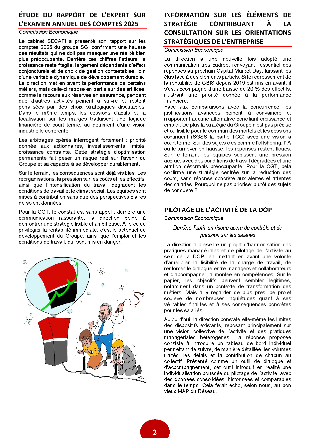Pour la CGT, le constat est sans appel : derrière une communication rassurante, la direction peine à démontrer une stratégie lisible et ambitieuse. À force de privilégier la rentabilité immédiate, c’est le potentiel de développement du Groupe, ainsi que l’emploi et les conditions de travail, qui sont mis en danger.