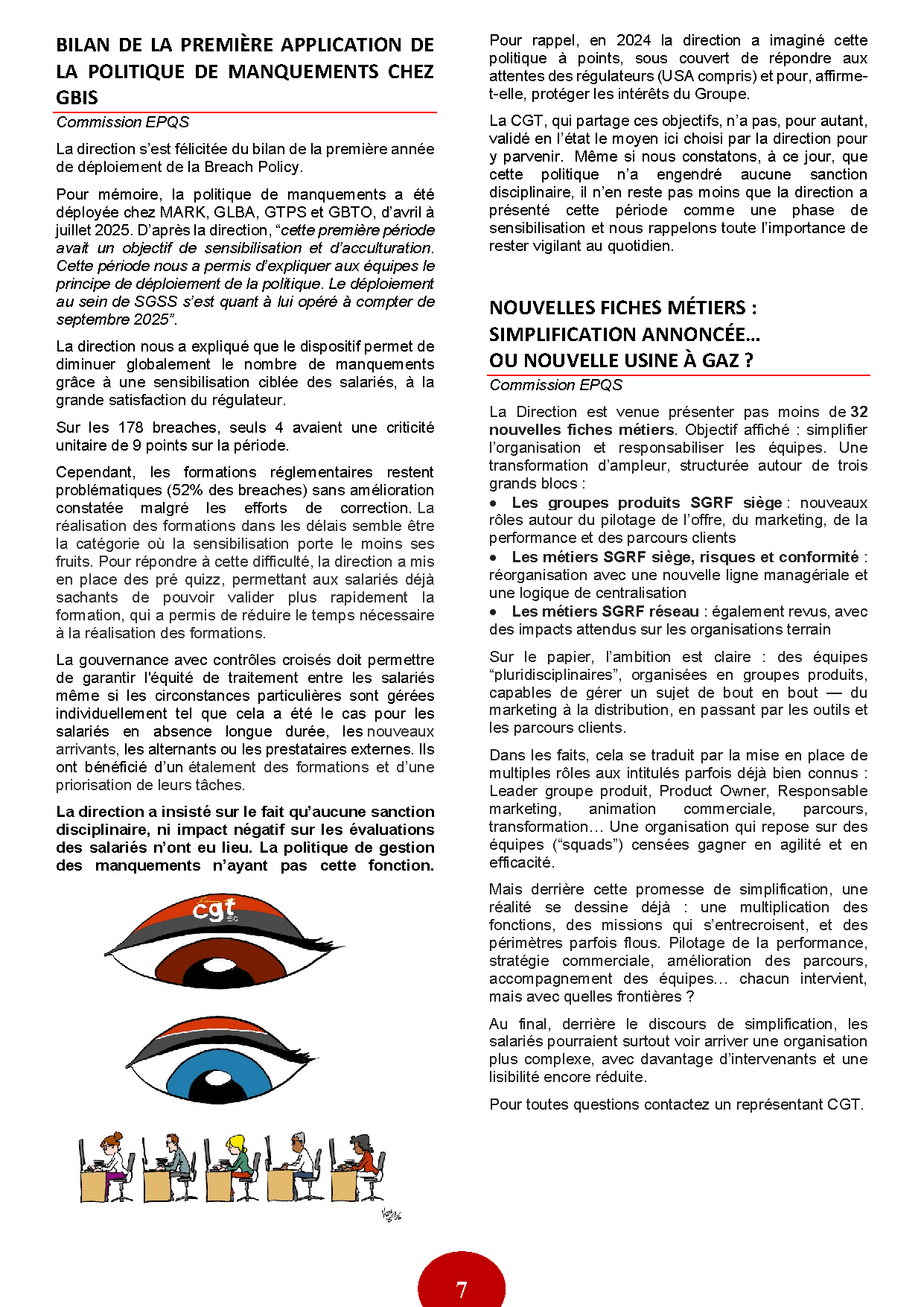 Face aux comparaisons avec la concurrence, les justifications avancées peinent à convaincre et n’apportent aucune alternative conciliant croissance et emploi. De plus la stratégie du Groupe n'est pas précise et ou lisible pour le commun des mortels et les cessions continuent (SGSS la partie TCC) avec une vision à court terme. Sur des sujets clés comme l’offshoring, l’IA ou le turnover en hausse, les réponses restent floues. Sur le terrain, les équipes subissent une pression accrue, avec des conditions de travail dégradées et une attrition désormais préoccupante. Pour la CGT, cela confirme une stratégie centrée sur la réduction des coûts, sans réponse concrète aux alertes et attentes des salariés. Pourquoi ne pas prioriser plutôt des sujets de conquête ?