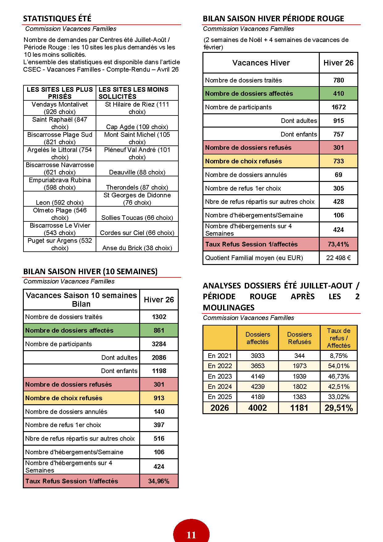 BILAN SAISON HIVER PÉRIODE ROUGE. 11