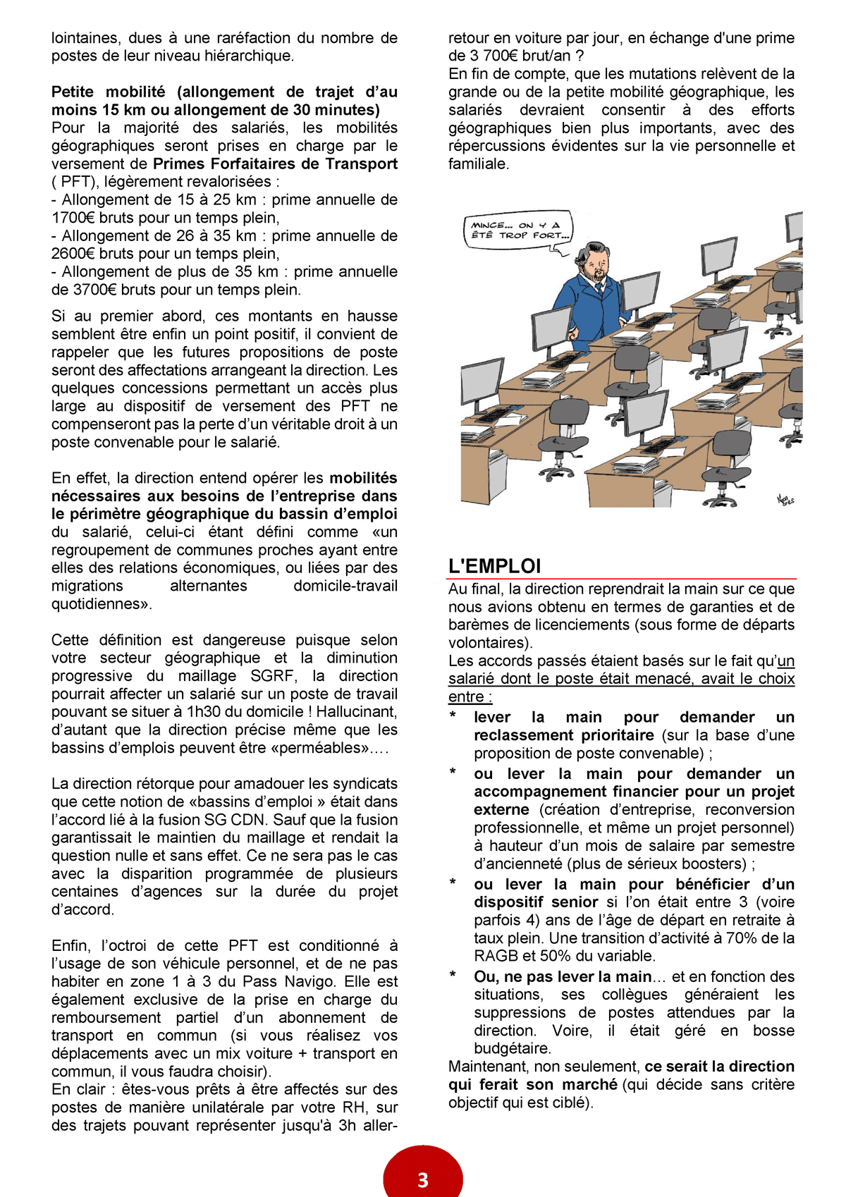 Cette définition est dangereuse puisque selon votre secteur géographique et la diminution progressive du maillage SGRF, la direction pourrait affecter un salarié sur un poste de travail pouvant se situer à 1h30 du domicile ! Hallucinant, d’autant que la direction précise même que les bassins d’emplois peuvent être «perméables»….